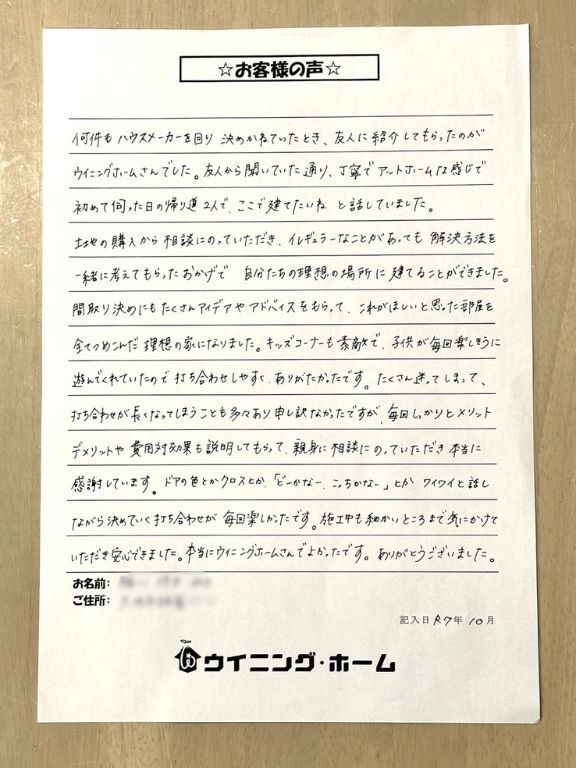 I様この度は、弊社にてご建築くださり、ありがとうございました