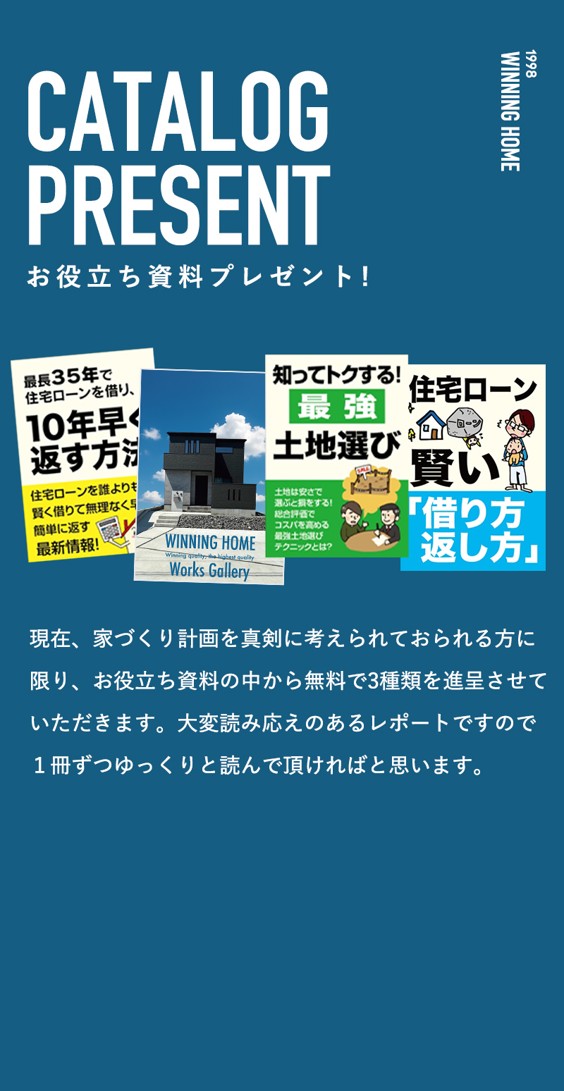 欲しい資料(3冊まで) 施工例集災害に負けない家づくり知ってトクする!最強土地選び住宅ローン 賢い借り方返し方一生付きあえる!住宅業者の選び方間取り5つのポイントマイホーム購入5つのチェックポイント住宅ローンを10年早く返す方法お金が増える家の建て方 お名前 ふりがな メールアドレス 電話番号 住所郵便番号 都道府県 都道府県を選択北海道青森県岩手県宮城県秋田県山形県福島県茨城県栃木県群馬県埼玉県千葉県東京都神奈川県新潟県富山県石川県福井県山梨県長野県岐阜県静岡県愛知県三重県滋賀県京都府大阪府兵庫県奈良県和歌山県鳥取県島根県岡山県広島県山口県徳島県香川県愛媛県高知県福岡県佐賀県長崎県熊本県大分県宮崎県鹿児島県沖縄県 市区町村 番地・建物名 その他ご質問 プライバシーポリシーに同意する 弊社のプライバシーポリシーを確認する